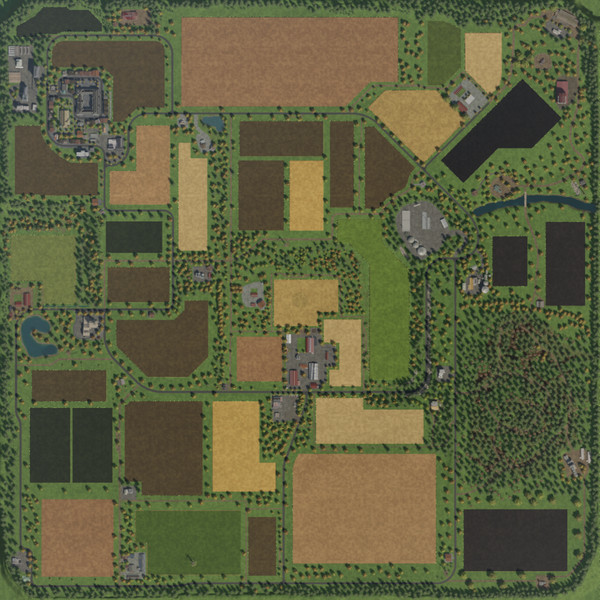 Это вымышленная карта. Есть средние-крупные поля. Большой лесной массив для лесохозяйственных работ.
