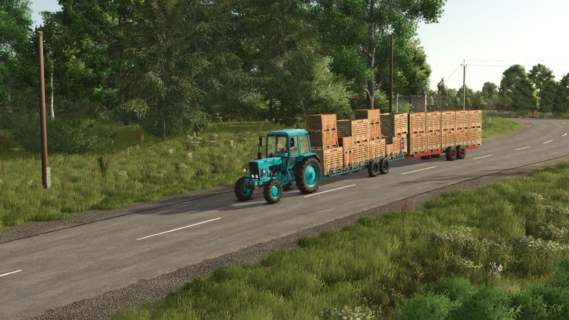 Эта машина предназначена для погрузки фруктов, упакованных в контейнеры, транспортировки их из-под рядов деревьев и доставки на склады и перерабатывающие предприятия для последующей разгрузки.
