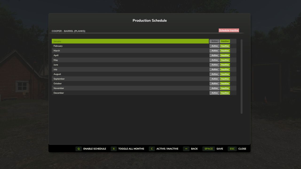 Месяцы можно включать или отключать по отдельности через встроенное меню на экране управления производством. В этом случае производство будет выполняться только в выбранные периоды.
