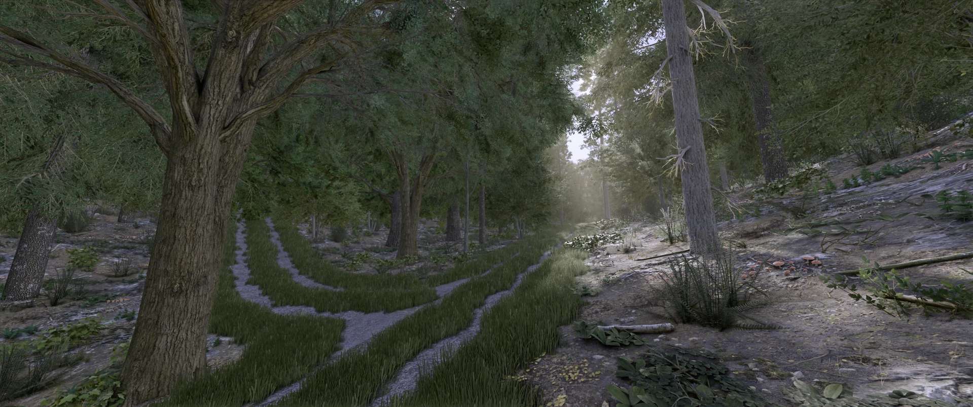Трава вдоль полевых дорожек была заменена на другую, более разнообразную, которая больше не отображается на карте как трава.