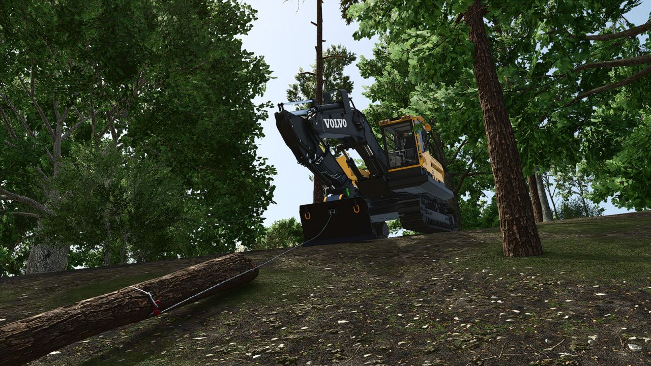 Лебедка для лесозаготовок и строительства грунтовых дорог, помогающая минимизировать количество транспортных средств в лесу и повышающая универсальность для пользователей экскаваторов. Чтобы включить переключение между режимами создания рельефа, необходимо включить лебёдку. После включения лебёдки можно выбрать две различные текстуры рельефа, складывая и раскладывая её.