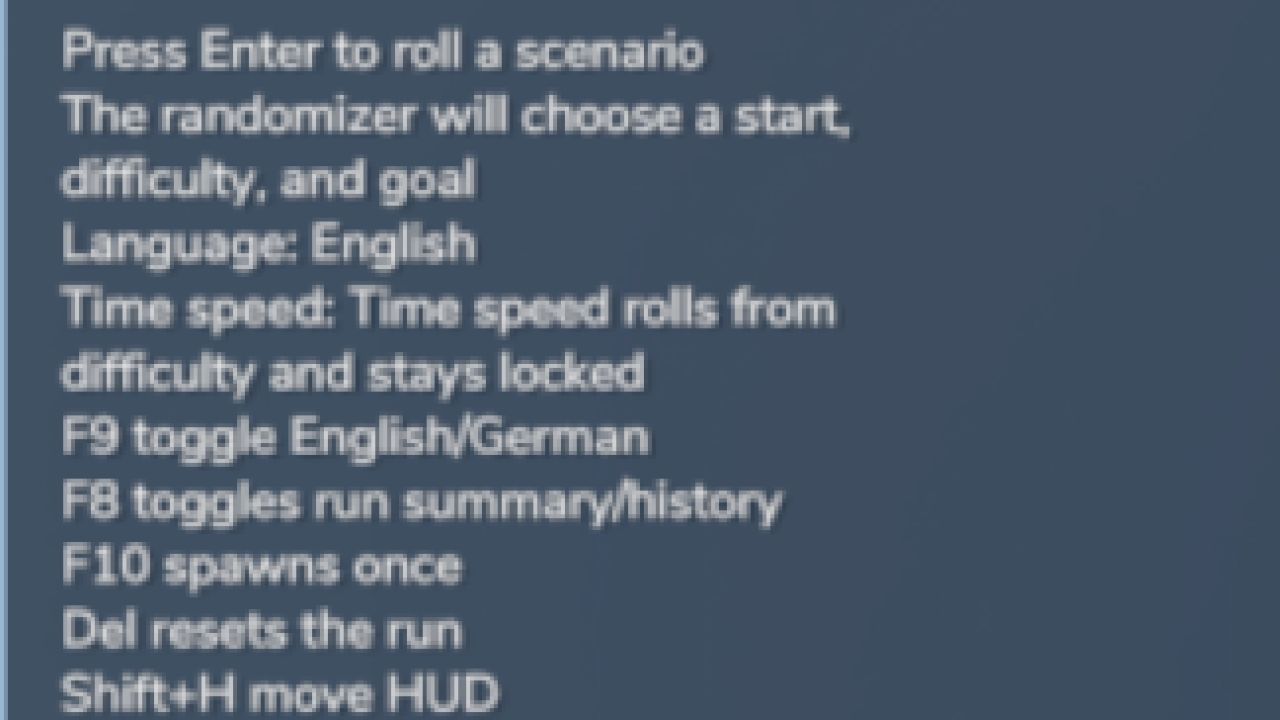 Этот мод создает случайную стартовую конфигурацию базовой игры с различными типами сценариев, комбинациями снаряжения, целями испытаний и правилами сложности. Каждое прохождение ощущается по-разному и может использоваться в качестве нового испытания для прохождений в стиле выживания или для создания серий игр.
