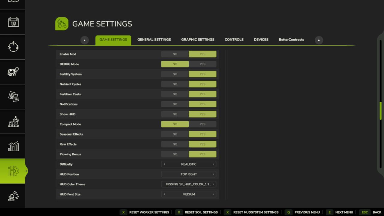 Все настройки находятся в игре в разделе «Почва и удобрения» в игровом меню. В многопользовательском режиме настройки игрового процесса контролируются администратором. Настройки интерфейса/отображения всегда задаются для каждого игрока отдельно.