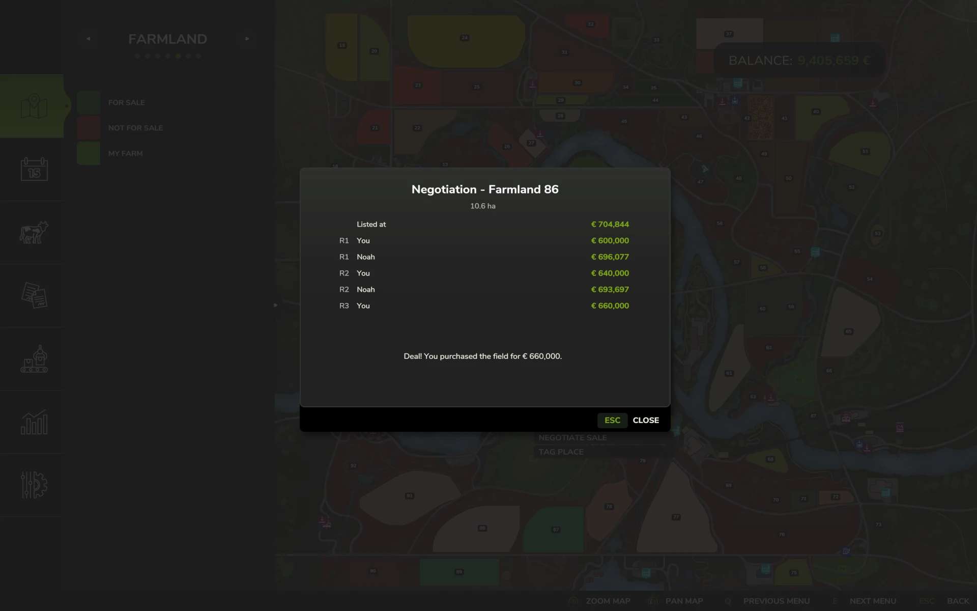 Это делает приобретение сельскохозяйственных земель более реалистичным и стратегическим. Цены на поля отражают фактическую стоимость урожая, и не все поля всегда доступны для покупки.