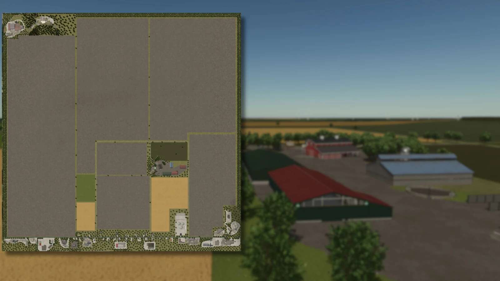 Это вымышленная карта, где можно заниматься земледелием, лесоводством и животноводством, что очень красиво, а поля очень большие.