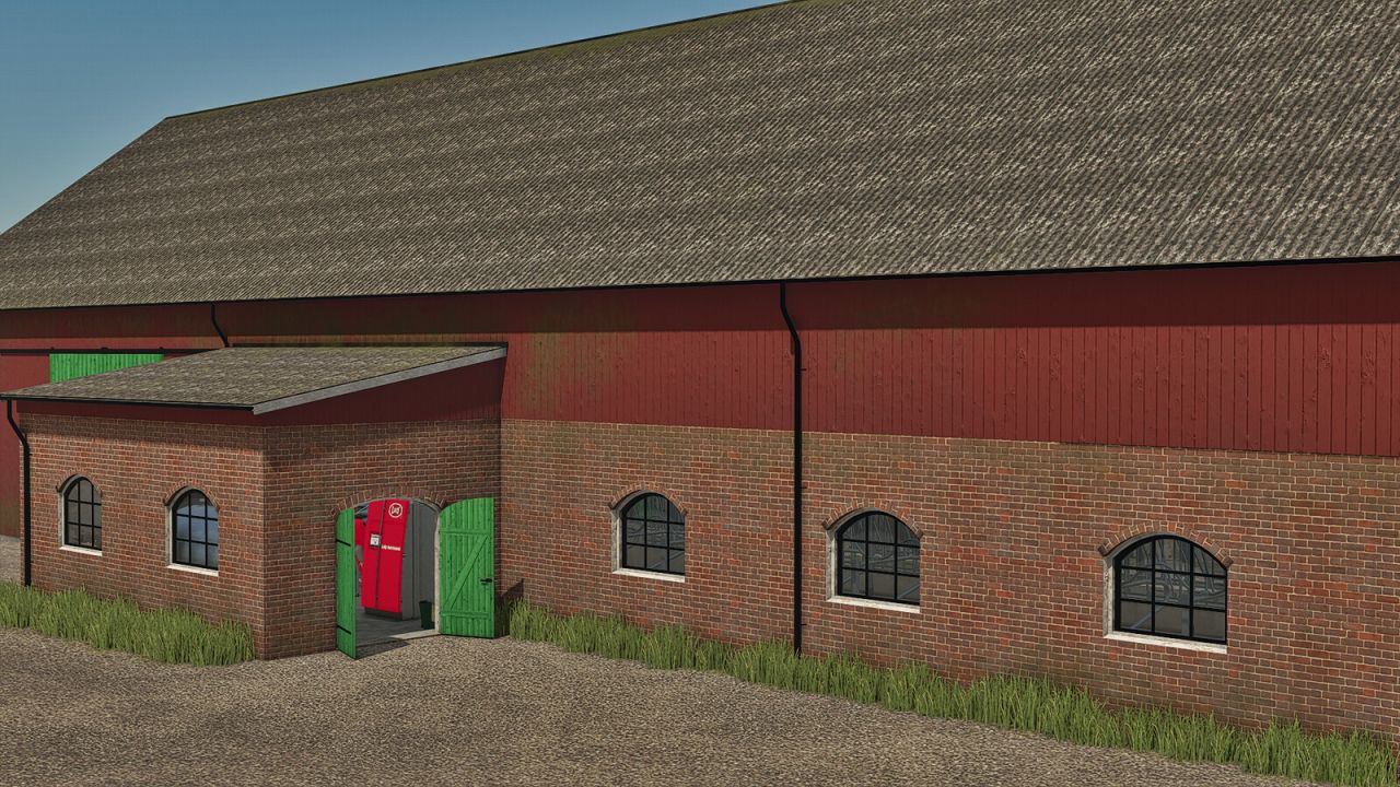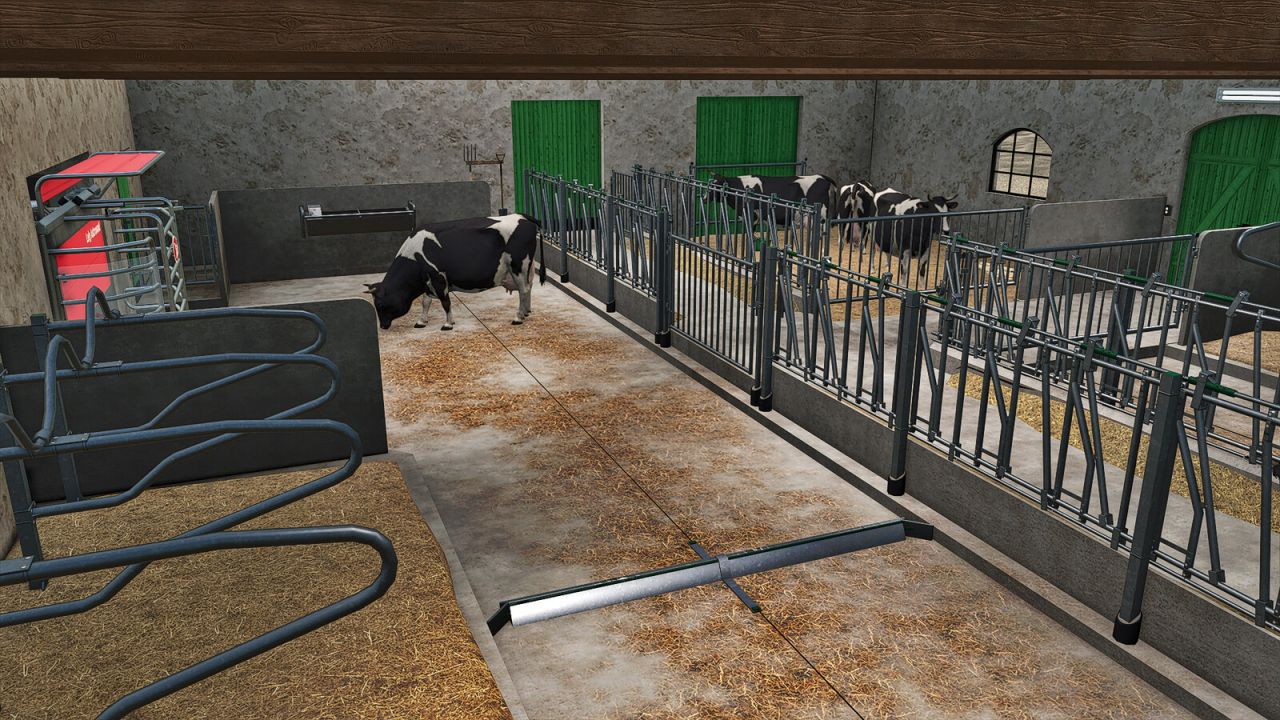 Существует два варианта здания: один с пастбищем, другой без него. Кроме того, предлагается множество конфигураций, например, три разных типа наружных стен: каменные, кирпичные и оштукатуренные. Двери могут быть зелеными или черными, а также можно выбрать цвет верхних стен. Также есть возможность выбрать марку доильного робота.
