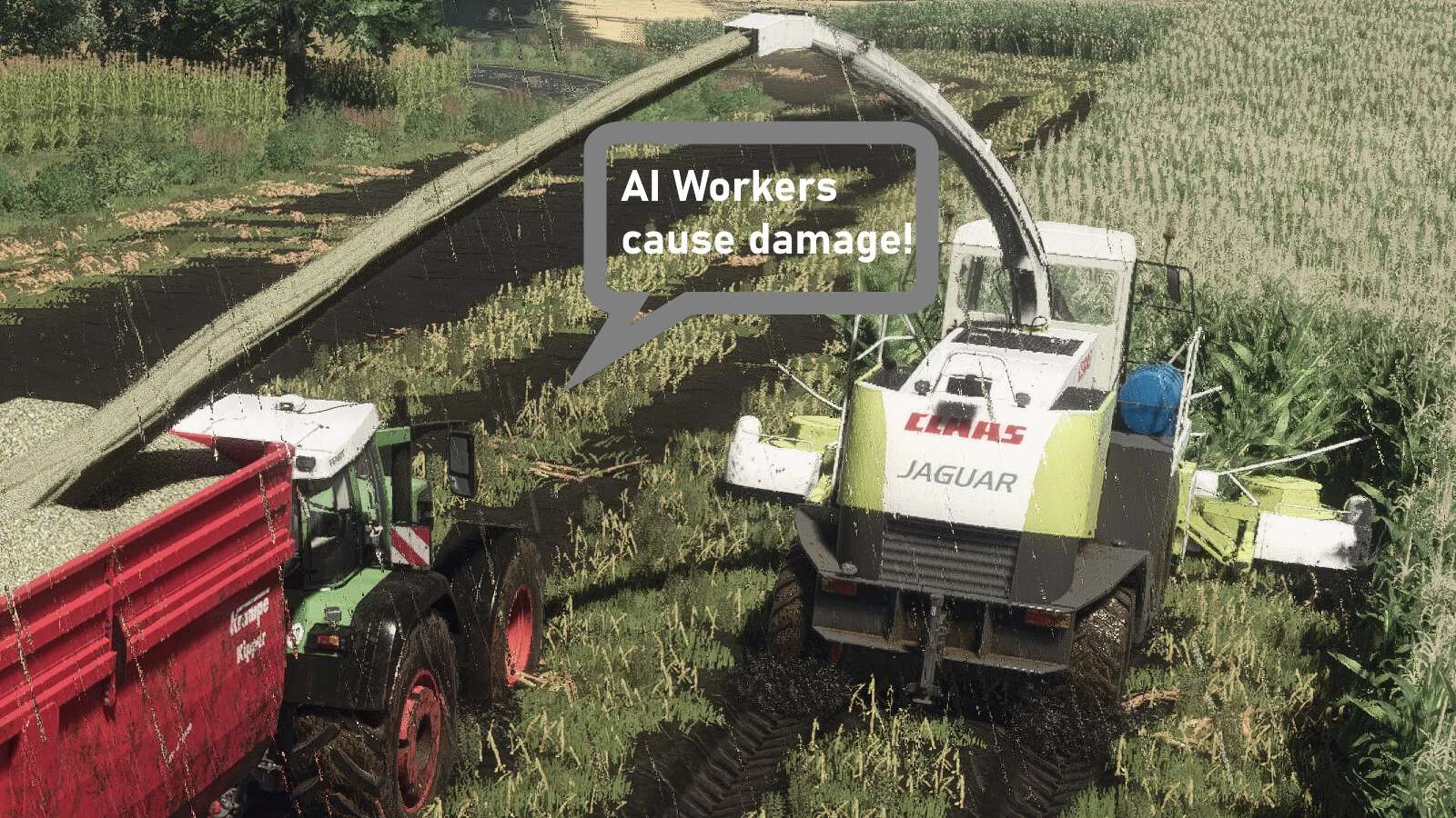 Функция «Уничтожение урожая с помощью ИИ» добавляет реалистичные повреждения урожая вашим работникам-ИИ. При включении этой функции ваши наемные помощники будут уничтожать урожай под колесами — точно так же, как это делала бы настоящая сельскохозяйственная техника!