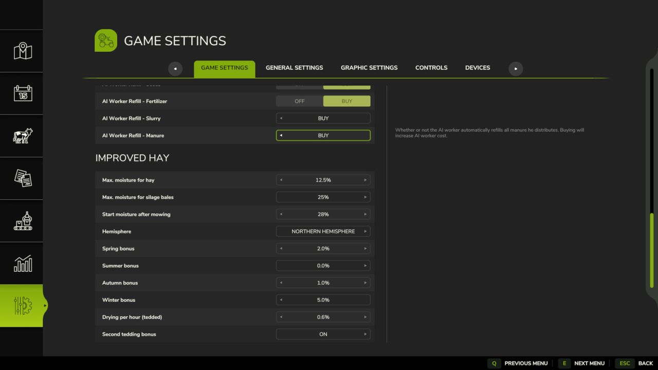 Добавляет реалистичную систему учета влажности при сушке травы и сена. Этот мод фокусируется исключительно на процессе сушки сена;