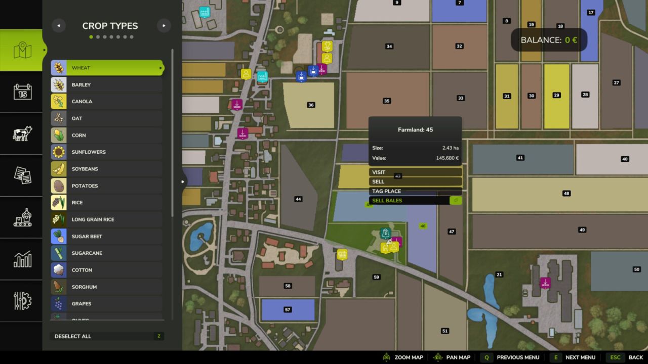 Чтобы увидеть кнопку «Продать тюки», выберите на карте принадлежащий вам участок земли с тюками.