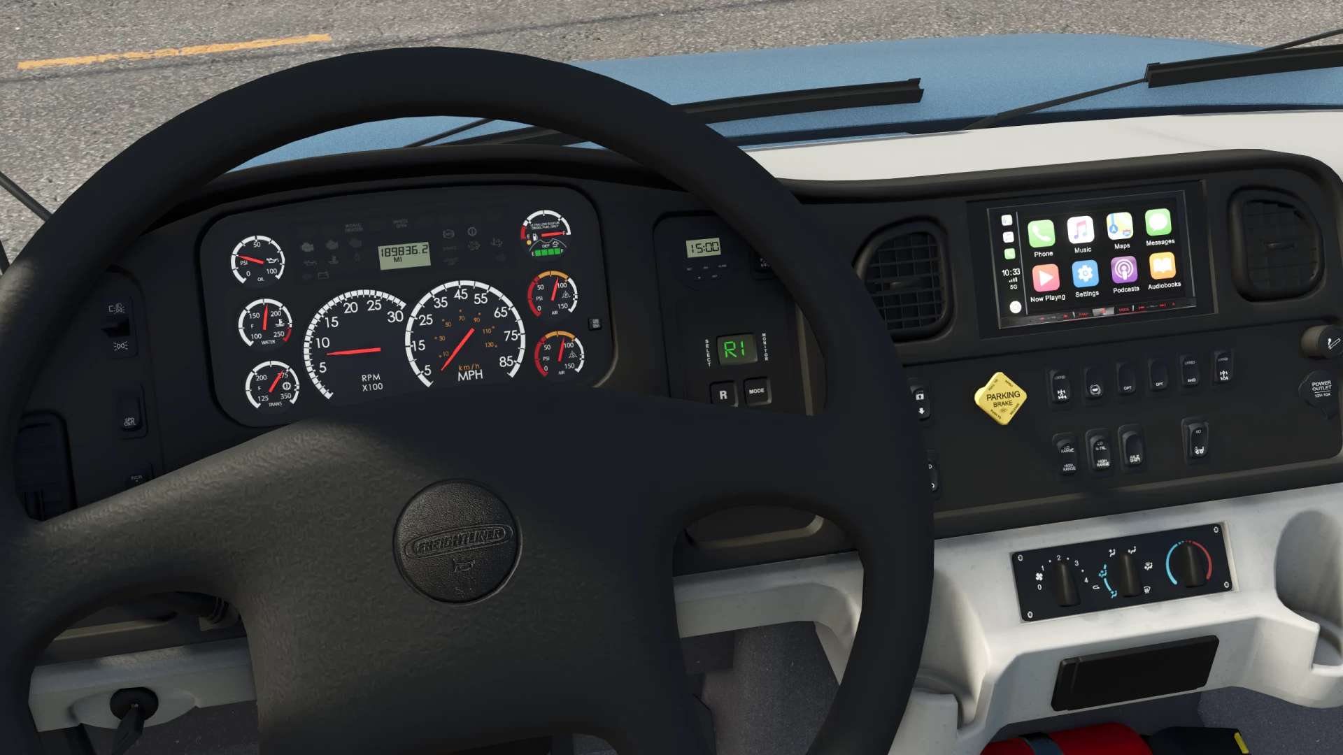 — Анимированная подвеска, карданные валы, приборная панель, стеклоочистители, рулевая колонка, педали, ключ зажигания и переключатели указателей поворота.