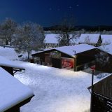 — Коровник из темно-коричневого дерева с черной крышей