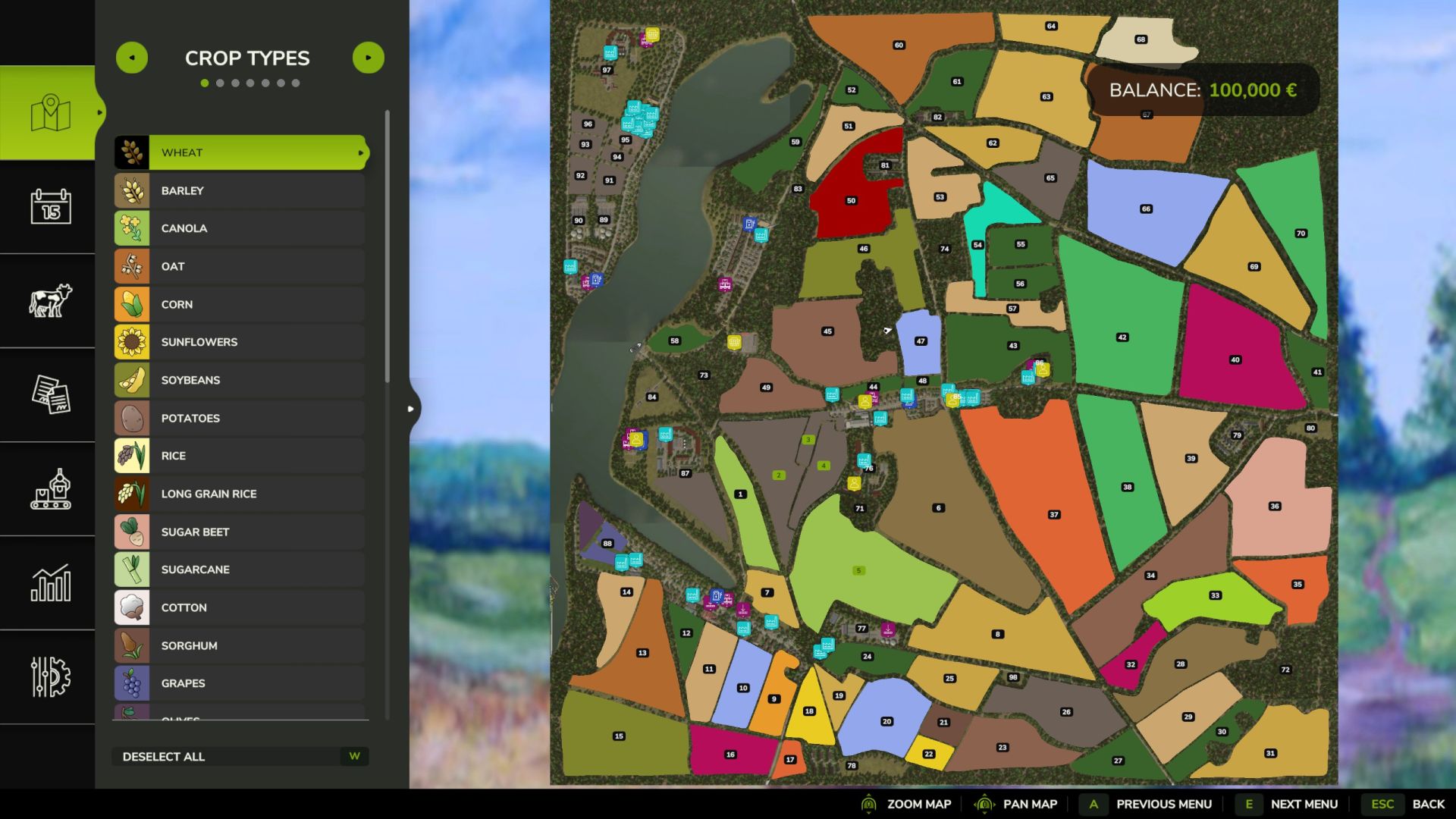 Также есть ещё шесть рисовых полей. На карте также изображены утки, которых можно содержать в курятниках, как обычно.
