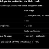 Это говорит о том, что важные части движка (например, симуляция, обновление объектов, логика дальности прорисовки) не полностью распараллелены.